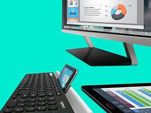 Logitech K780 este o tastatura complet echipata, cu un finisaj deosebit - poate functiona de asemenea, cu smartphone-uri sau tablete.