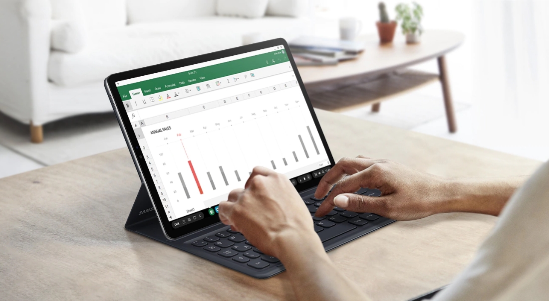 Mulțumită Samsung Dex puteți să împerecheați dispozitivul cu o tastatură pentru a tipări documente sau e-mailuri cu o precizie mult mai mare. Mai bine conectați tabletă la monitorul dumneavoastră de birou pentru a vă maximiza experiență de vizionare când conținutul solicită un ecran mai mare.