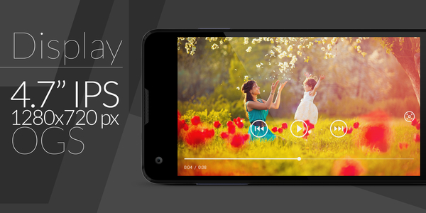 Display-ul IPS de 4,7” cu rezolutie de 1280 x 720 px si touchscreen-ul OGS dau viata culorilor si imaginilor redate de smartphone. Ecranul este protejat de Dragontrail Glass, un strat de sticla proiectat pentru obtinerea unei combinatii optime intre dimensiuni reduse, greutate usoara si rezistenta.