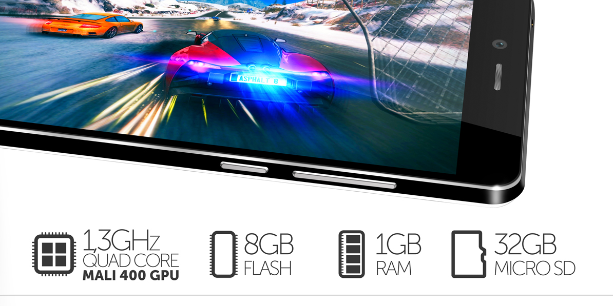 Bucura-te de performanta sistemului de operare Android™ 4.4, KitKat® care, impreuna cu puterea procesorului Quad Core si memoria RAM de 1 GB, iti va fi partenerul ideal in activitatile desfasurate. Procesorul grafic Mali 400 MP va face ca aplicatiile si jocurile care te destind sa fie cat mai reale si astfel vei intra in lumea fascinanta a acestora. Memoria flash a device-ului de 8 GB poate fi completata de un card microSD de pana la 32 GB, pentru a-ti asigura spatiul necesar pentru proiecte, prezentari, filmulete sau poze. Muzica redata va suna excelent datorita sistemului DTS integrat.