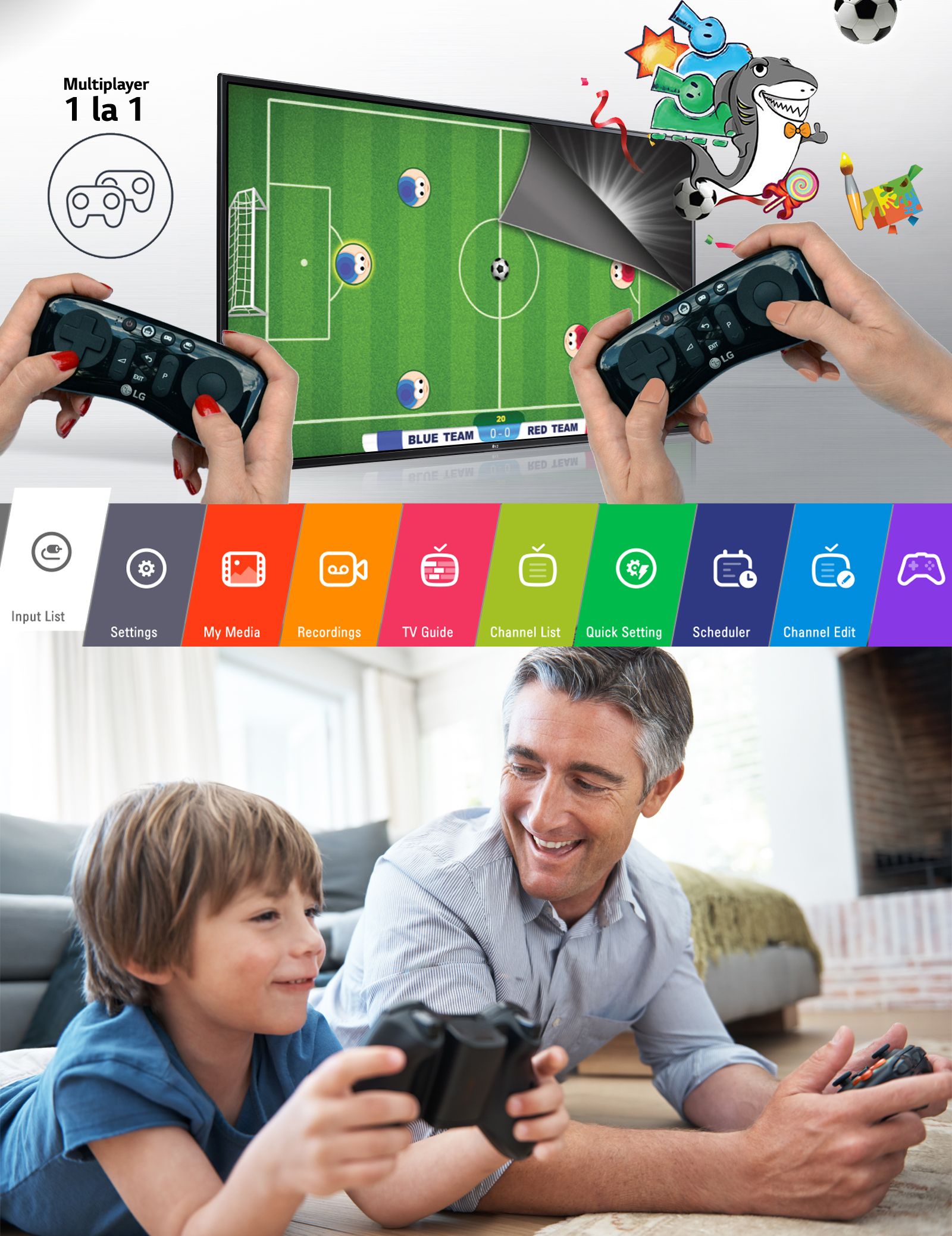 Impreuna cu telecomanda speciala LG Quick Remote utilizarea TV-ului a devenit mai prietenoasa si mai distractiva, ai control deplin asupra jocurilor si functiilor. In plus te poti bucura de gaming in sistem multiplayer, impreuna cu prietenii tai. * Telecomanda Quick Remote este disponibile in functie de model si promotie. **Poti descarca jocurile pentru modelele compatibile de pe www.lg.com/ro sectiunea suport produs. |