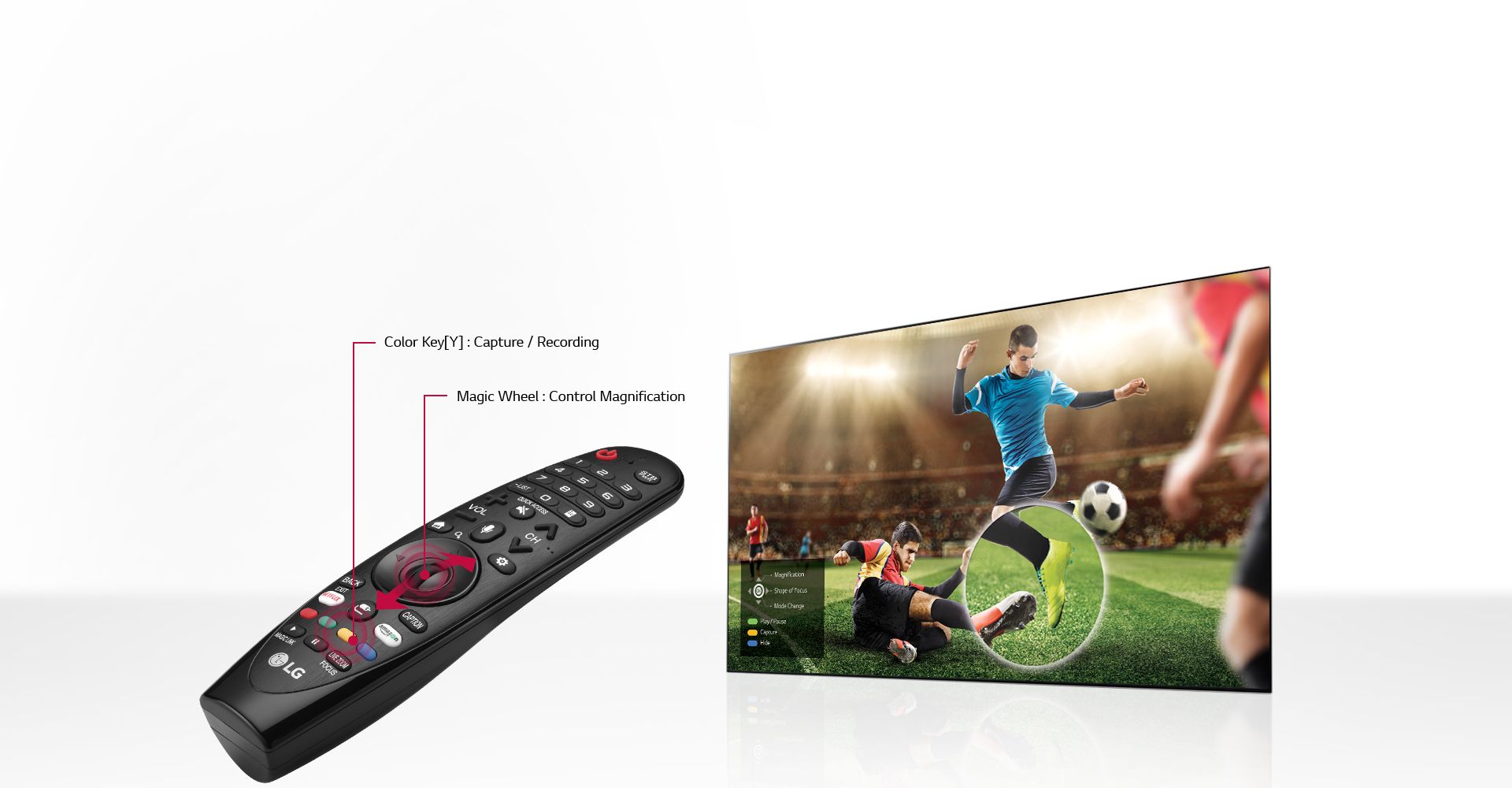 | Magic Zoom Aceasta functie permite zoom pe un subiect selectat cu ajutorul Magic Remote. Cu ajutorul aceste functii esti sigur ca vezi toate detaliile din zona ta de interes. Magic Zoom functioneaza pe orice sursa video si are diferite moduri de utilizare de la o lupa rotunda dinamica la un chenar ce poate fi pozitionat fix sau dinamic. Acum poti chiar sa inregistrezi doar continut marit cu Magic Zoom. |