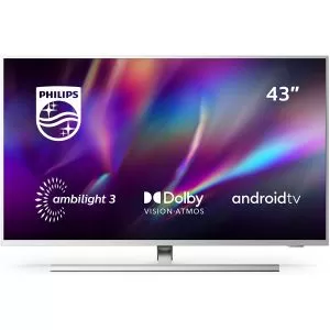 Televizor Philips 43PUS8545/12, 108 cm, Smart Android, 4K Ultra HD, LED, HDR, Android, YouTube, Netflix, HBOGo, Comenzi vocale, Asistent vocal inteligent, Screen Mirroring, Ambilight, Quad core, 3840 x 2160, HLG, Dolby Vision, HDR 10+, DVB-C, DVB-S, DVB-S2, DVB-T, DVB-T2, Egalizator cu 5 benzi, Dialog clar, Mod Noapte, Dolby Atmos, Dolby Volume Leveler, Sunet AI, Egalizator Automat, Dolby Bass Enhancement, RMS 20 W, Wi-Fi, Bluetooth, 1 x Jack 3.5 mm, 1 x RJ-45, 1 x S/PDIF, CI+ slot, 4 x HDMI, 2 x USB, 1 x RF, Vesa 200 x 200, Argintiu