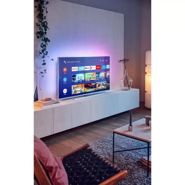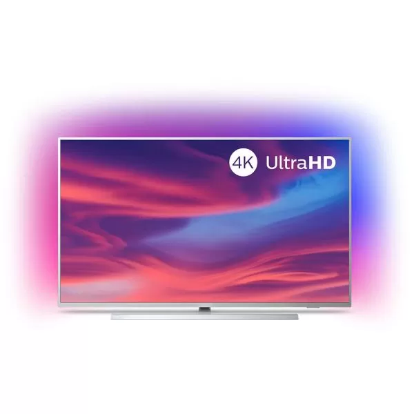 Televizor LED PHILIPS 50PUS7304/12, 50"- 126 cm, Ambilight 3 laturi, + Hue integrat, muzica Ambilight, mod joc, adaptare la culoarea peretelui, mod lounge, 4K UHD 3840*2160, 16:9, HDR10+, Dolby vision, Android™ 9.0, memorie 16GB, HbbTV, autodetectare dispozitive Philips, SimplyShare, procesor Quad Core, DVB-T/ T2/ T2-HD/ C/S /S2, 4*HDMI, 2*USB, component, Bluetooth 4.2 Wi-Fi 802.11n, 2x2, banda dubla, CI+, RJ-45, casti, clasa energetica A, boxe 2*10W, Dolby Atmos, amplificare bas, telecomanda cu baterii incluse, VESA 300x200, argintiu deschis