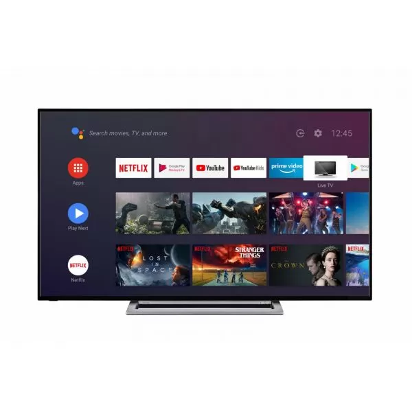 LED TV TOSHIBA 4K-ANDROID 65UA3A63DG, 65" D-LED, 4K Ultra HD (2160p), DolbyVision HDR / HLG + MicroDimming, Digital TV-Tuner DVB-S2/T2/C, Android TV 9.0 (Chromecast built-in) +GoogleAssistant +BT4.0, 1xLAN (RJ45), DLNA 1.5, Contrast 5000:1, 350 cd/m2, 1xCI+, 4xHDMI, 2xUSB, Dolby Audio (DAP) +DTS, Hotel TV Mode (Passive), Middle Stand, BLACK