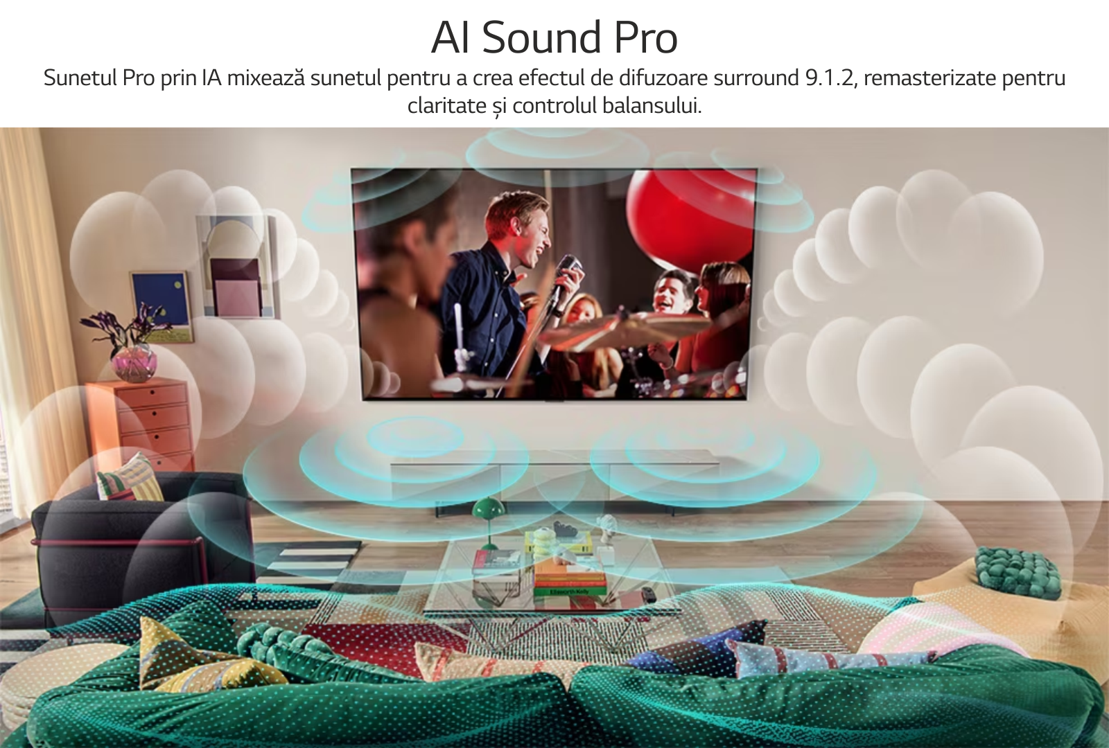 | Sistem audio | Dolby Atmos LG Sound Sync Simultaneous audio output AI Acoustic Tuning AI Sound Pro Clear Voice Pro |