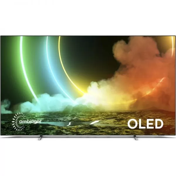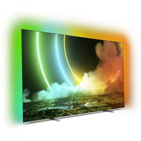 Televizor, Philips, Ambilight, 55OLED706/12, 2021, 139CM, OLED, Smart TV, 4K, Argintiu, Plat, Android 10, Mirroring iOS, Android, P5 AI Perfect Picture, HDR10+/HLG, 100 Hz, DVB-T/T2/T2-HD/C/S/S2, 2.1, 20 W, Subwoofer integrat: Da, Wi-Fi, Bluetooth, 1 x RJ-45, 1 x S/PDIF, CI+ slot, 4 x HDMI, 3 x USB, 1 x Jack 3.5 mm , 300 x 300, Cablu de alimentare, Telecomandă, Baterii, Manual de utilizare