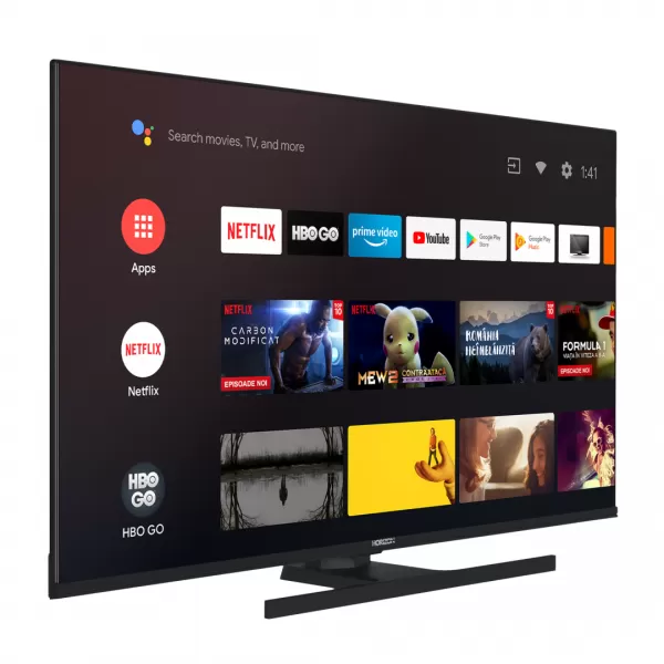 QLED TV HORIZON 4K-ANDROID 43HQ8590U/B, 43" D-LED, 4K Ultra HD (2160p), DolbyVision HDR / HDR10+ / HDR10 / HLG + MicroDimming, Digital TV-Tuner DVB-S2/T2/C, CME 400Hz, Android TV 9.0 (Chromecast built-in) +GoogleAssistant +BT4.0, 1xLAN (RJ45), DLNA 1.5, Contrast 5000:1, 250 cd/m2, 1xCI+, 3xHDMI, 2xUSB, Dolby Audio (DAP) +DTS, VESA 100 x 100 mm|M4, Metallic Middle Stand,BLACK