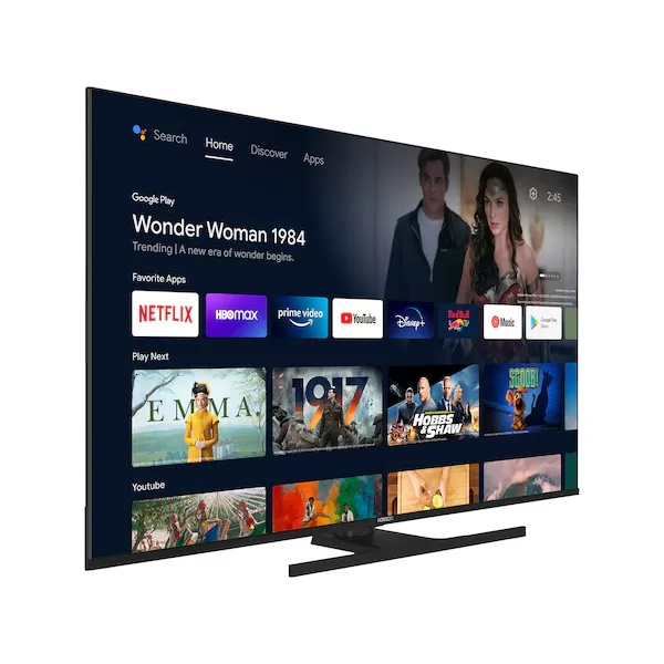 QLED TV HORIZON 4K-ANDROID 50HQ8590U/C, 50" D-LED, 4K Ultra HD (2160p), DolbyVision HDR / HDR10+ / HDR10 / HLG + MicroDimming, Digital TV-Tuner DVB-S2/T2/C, CME 400Hz, Android TV 11 (Chromecast built-in) +GoogleAssistant +BT4.0, 1xLAN (RJ45), DLNA 1.5, Contrast 5000:1, 250 cd/m2, 1xCI+, 3xHDMI, 2xUSB, Dolby Audio (DAP) +DTS, VESA 200 x 200 mm|M6, Metallic Middle Stand,BLACK