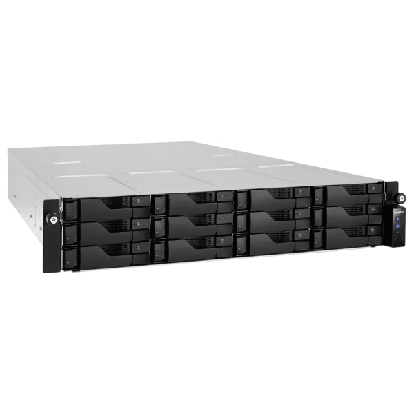 12-Bay Rack mount NAS, Redundant power supply, Intel i3-4330 3.5GHz (Dual Core), 4GB DDR3, GbE x 4 (w/ link aggredation), USB 3.0 and SATA III, WoL, System Sleep Mode, ADM O.S. and Applications included, 4 channels NVR FREE up to 24