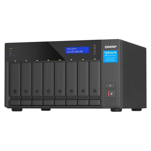 NAS QNAP H874 8-Bay, CPU Intel® Core™ i5-12400 6-core 12-thread Processor, up to 4.4GHz, RAM 32GB (2x 16GB) DDR4 SODIMM (Max. 128GB), 8 x 2.5"/3.5" SATA 6Gbps + 2 x M.2 2280 NVMe HDD (neincluse), LAN: 2 x 2.5GbE (2.5G/1G/100M/10M), Tower, Single PSU, 250W, garantie 3 ani