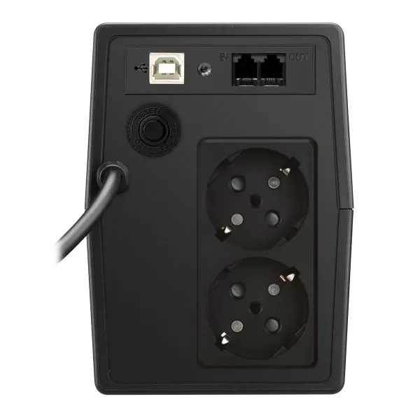 MUSTEK PowerMust 600 LCD Line Int. Schuko, 600VA/360W, 2x Schuko outlets, USB management, front LCD display, RJ11/45 dataline protection