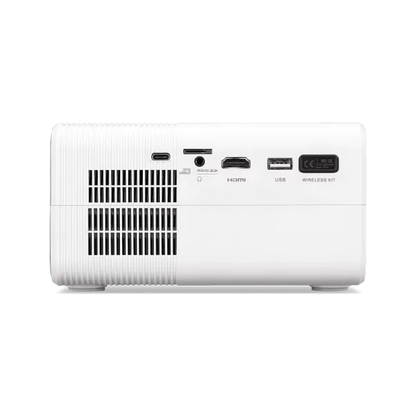Proiector ACER AOPEN QF12, LCD, FHD 1920*1080, 5.000 lumeni (LED brightness), 16:9/ 4:3, 1000:1, zoom 1x, dimensiune maxima imagine 155"/ 393 cm, distanta maxima de proiectie 4.5 m, LED 30.000 ore, HDMI, MicroSD, USB (Wireless dongle, Type A), USB Type-C, Headphone Out, boxa 5W, greutate 1.3 kg, 34 dB, telecomanda, capac lentila, Wireless Dongle inclus, Built-in Bluetooth Speaker, culoare alb