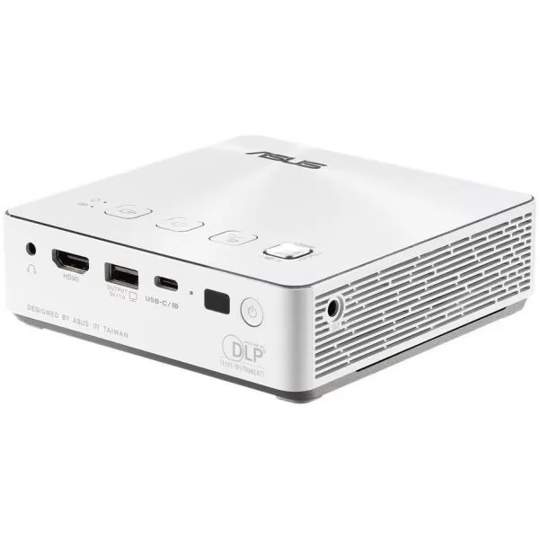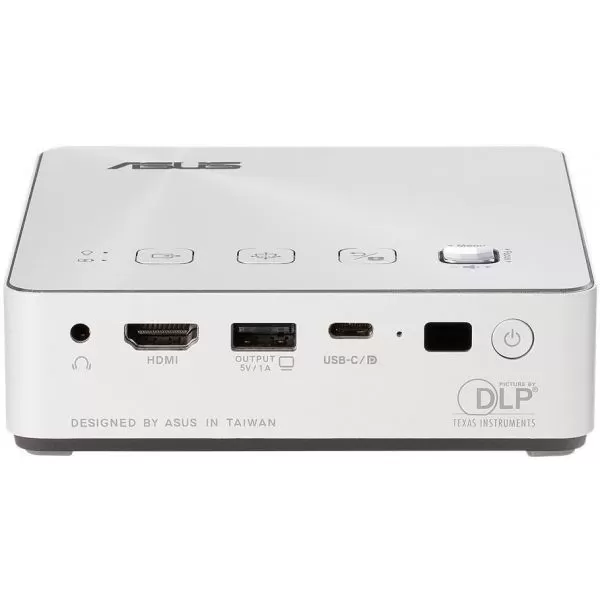 Proiector portabil ASUS S2 ZenBeam, DLP, HD 1280x720, up to FHD 1920x1080, 30.000 ore, 500 lumeni, 1000:1, distanta maxima de proiectie 3 m, dimensiune maxima imagine 120", 4:3 /16:9/ 16:10, 3D ready, wireless ready, boxa 2W, baterie 5 V, 6000mAh, HDMI, USB-C, USB type A, 3.5mm Mini-Jack, dimensiuni 120 x 35 x 120mm, greutate 497 g, geanta transport inclusa, cablu HDMI inclus, telecomanda inclusa, culoare alb