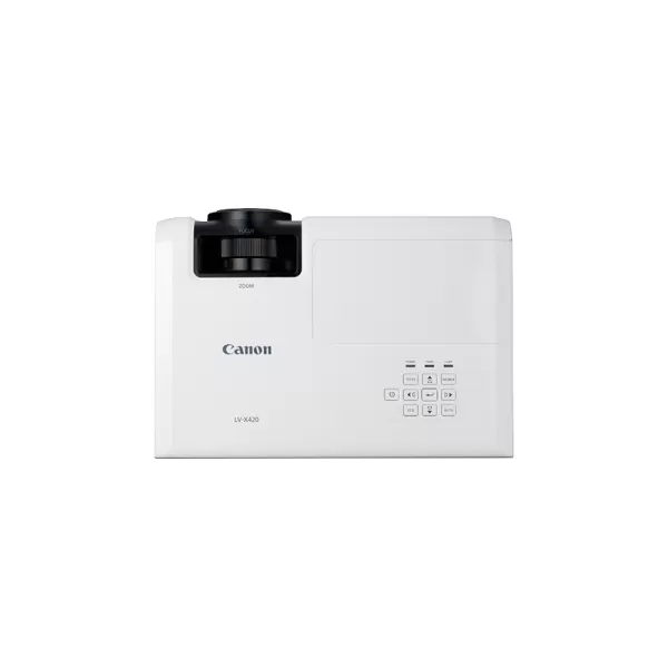 Proiector CANON LV-X420, DLP, XGA 1024x768, 4200 lumeni, Contrast: 10000:1,lampa.2500 ore EcoMode, boxa 10 W mono, Conexiuni: HDMI™ (cu Deep Colour), intrare MHL, Mini D-Sub cu 15 pini, S video, intrare audio Mini-mufă stereo de 3,5 mm, iesire audio Mini-mufă stereo de 3,5 mm, retea RJ-45 (100BASE-TX / 10BASE-T), culoare alba, greutate 3.4kg.