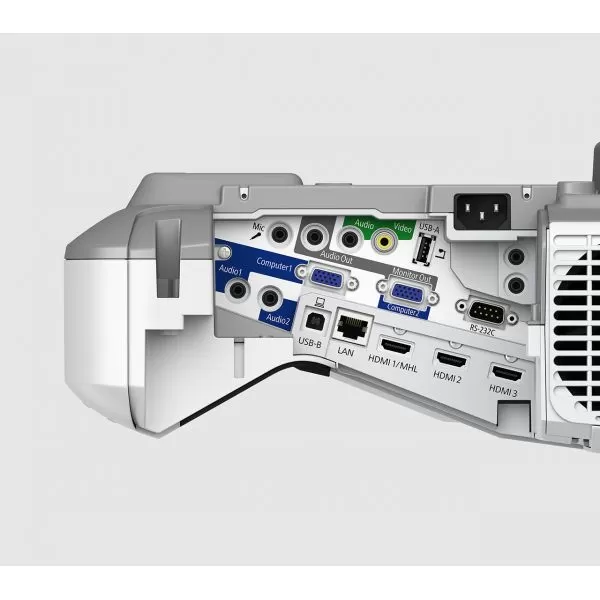 | Conectori | USB 2.0 tip A, USB 2.0 tip B, RS-232C, Interfaţă Ethernet (100 Base-TX/10 Base-T), LAN wireless IEEE 802.11 b/g/n (WiFi 4) (opţional), Intrare VGA (2x), Ieşire VGA, Intrare HDMI (3x), Intrare semnal compus, Intrare RGB (2x), Ieşire RGB, MHL, Ieşire audio mini-jack stereo, Intrare audio mini-jack stereo (3x), intrare pentru microfon, Intrare sincronizare, Ieşire sincronizare |