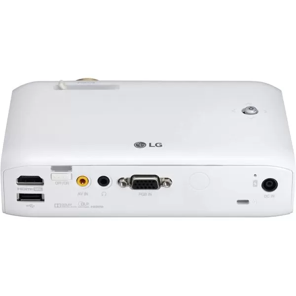 Proiector LG PH510PG, HD 1280* 720, 100.000:1, 550 lumeni, 23- 30 dB, RGB LED 30.000 ore, dimensiune maxima imagine 100", boxe 2* 1W, baterie max 2.5 ore, greutate 650 g, RGB in, Phone to AV in, RGB to Component in, USB type A, HDMI/ MHL, Screen Share, Bluetooth Sound out/ AV Sync Adjustment, Kensington Lock, geanta transport inclusa, telecomanda cu baterii incluse, culoare alb